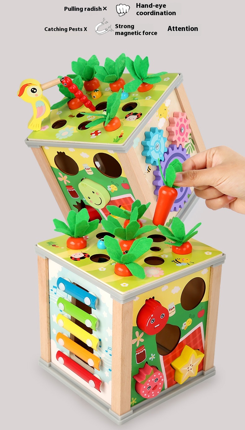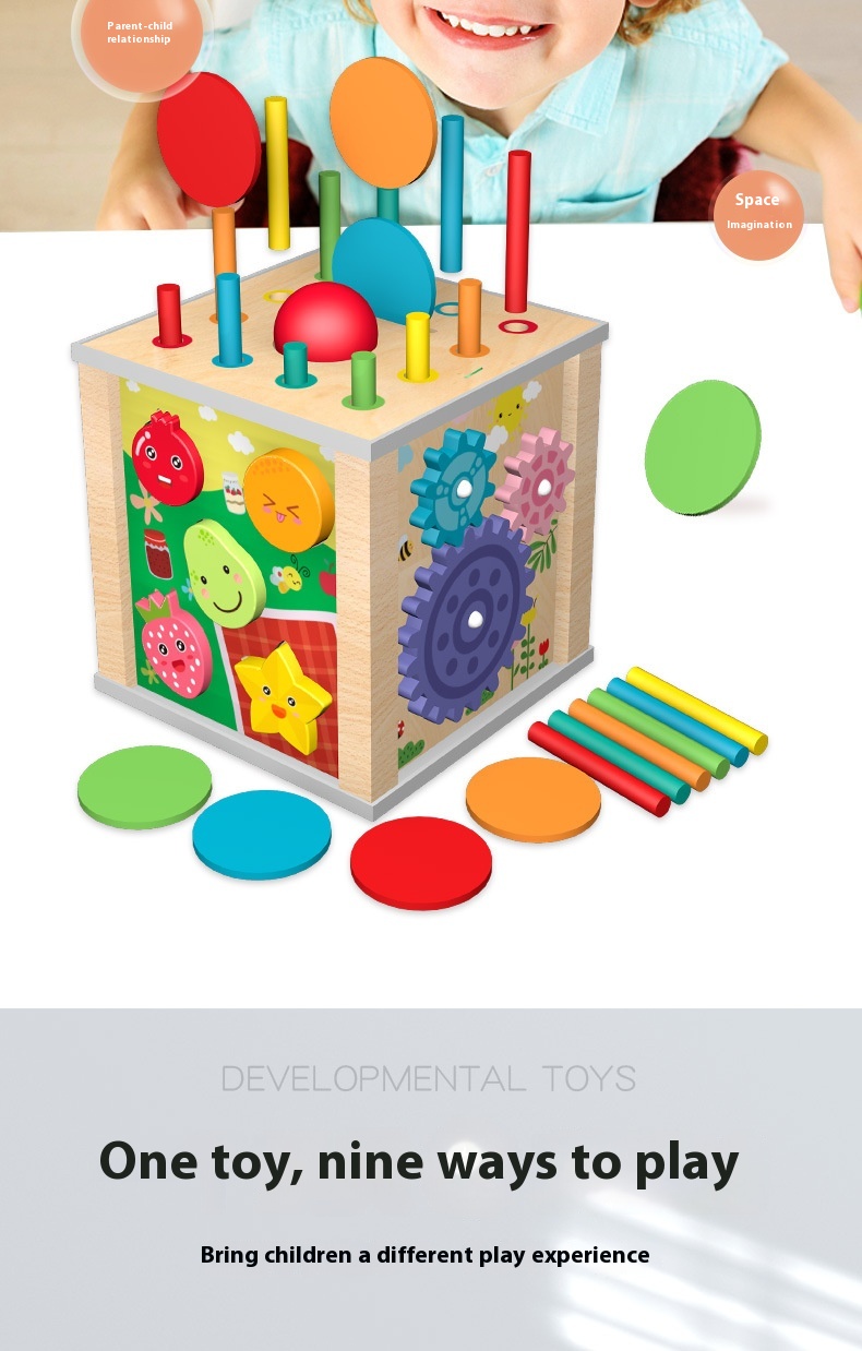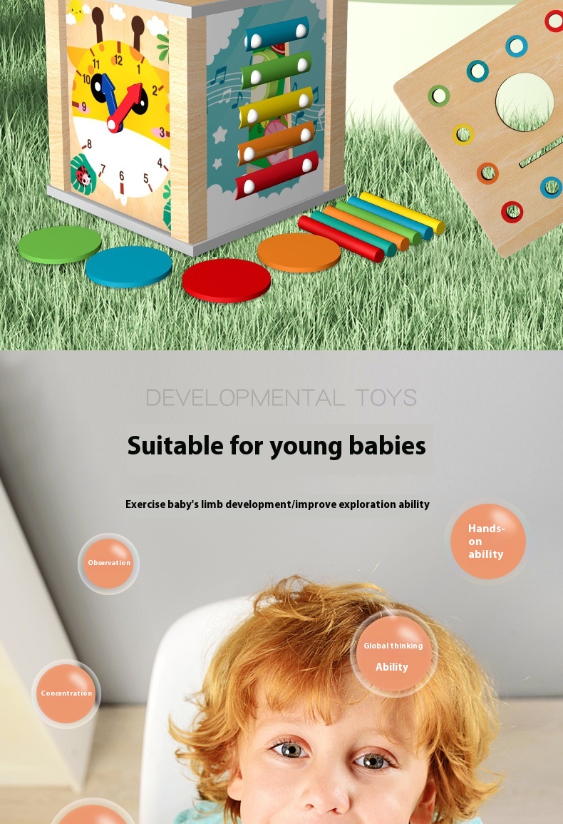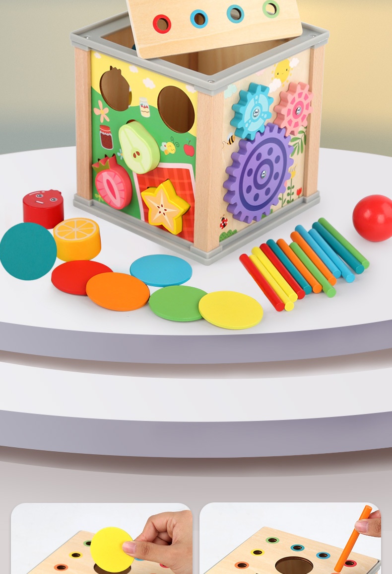 9-in-1-Aktivitätswürfel aus Holz – Montessori-Lernspielzeug für Kleinkinder