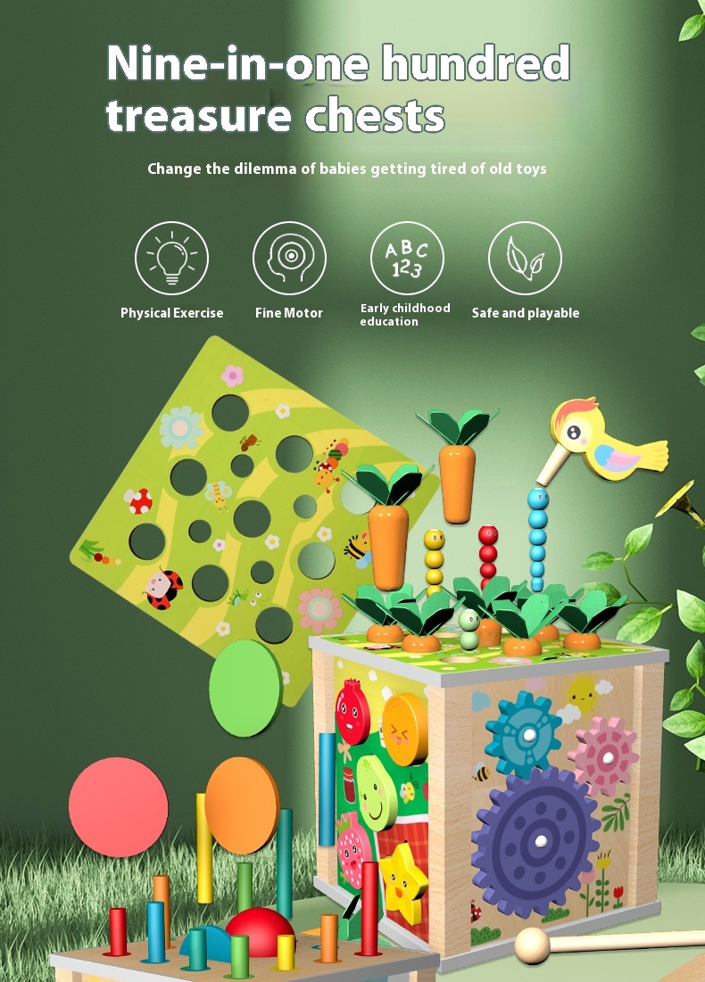 - 9-in-1-Multifunktionsdesign – Begeistert Kleinkinder mit verschiedenen Aktivitäten, darunter Formen sortieren, Zahnraddrehen und Farben zuordnen.